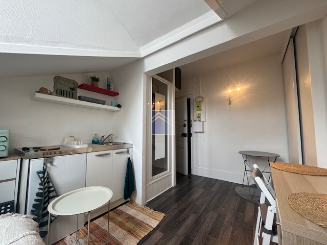 Courbevoie (92400)Bécon - proche de toutes commodités (gare à 4mn, commerces...), dans un immeuble bourgeois 1900, au 5ème et dernier étage sans ascenseur, studette meublée de 12m². Une entrée, pièce à vivre lumineuse, coin cuisine équipé, placards et douche. WC SUR LE PALLIER !!! Chauffage collectif.