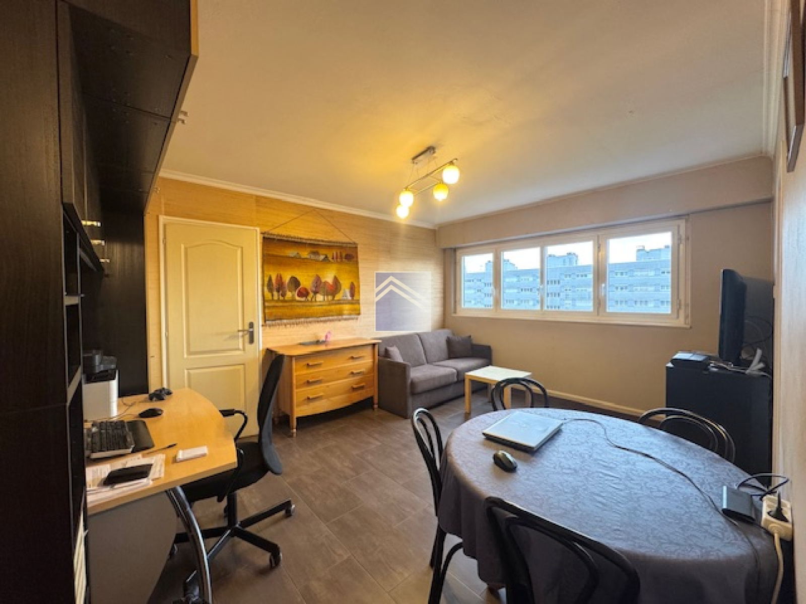 Courbevoie (92400)Coeur de Ville - Charras - à 7 minutes de la Gare de Courbevoie - proche des commerces - au 6ème étage d'un immeuble sécurisé avec gardiennage, 2 pièces de 41m². Une entrée avec placards, un séjour lumineux avec vue dégagée, une cuisine séparée aménagée (possible cuisine US), une partie nuit avec une chambre, un dressing, une salle d'eau et des WC séparés. Cave et parking au sous-sol. Chauffage et eau collectifs.