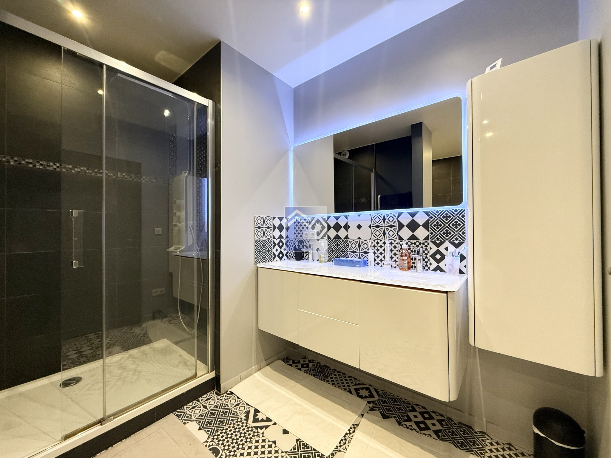 Ce bien se compose d’une entrée ouvrant sur un vaste séjour baigné de lumière, d’une cuisine semi-ouverte entièrement équipée, de trois chambres avec placards intégrés, de WC séparés, ainsi que d’une salle d’eau élégamment aménagée avec douche, toilettes et jacuzzi, offrant un confort absolu. Un dressing complète harmonieusement l’ensemble, proposant des solutions de rangement optimales.